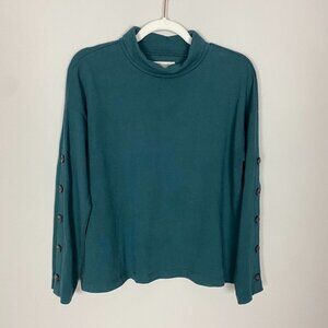 Madewell Button Sleeve Turtleneck Long Sleeve Shirt Womens XS Green Oversized