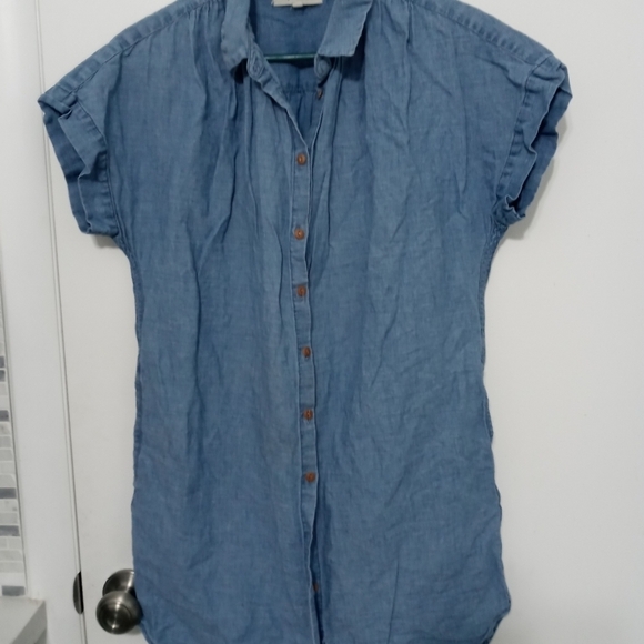Madewell Short Sleeve Button Down Denim Summery Knee Length Dress..W Pockets and Collar 59% Linen 41% Cotton. Lightweight Size Small. Excellent Pre Owned Condition