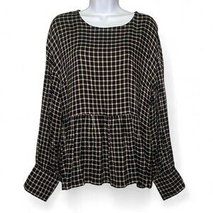 Madewell Button-Back Peplum Top in Mini Windowpane in Check Twill size large; new with tags. Made of checked fabric, this easy-on-the-body top has lots of lovely details: a button back, tall cuffs and a swingy peplum. There are no rips, tears, or stains and wash tag is intact. Accepting reasonable offers. Thanks for looking. 💛🏔️