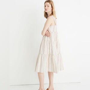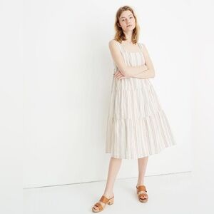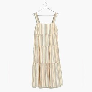 Madewell Button-Back Tiered Dress in Textural Rainbow Stripe