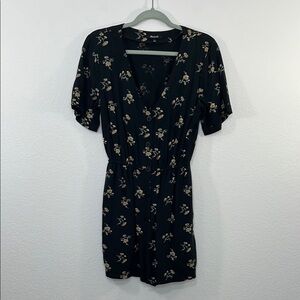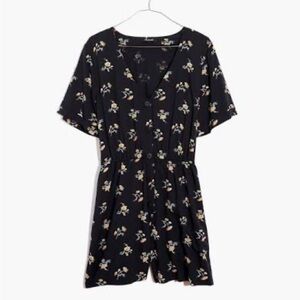 Madewell Button-Front Day Black Romper in Daisies Floral print size Small