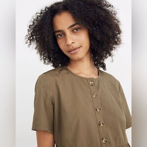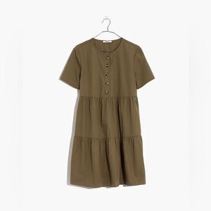 Madewell Button-Front Short-Sleeve Tiered Mini Dress Sz S Olive green
