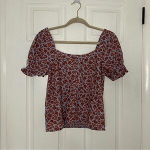 Madewell Button-Front Smocked-Back Top in Piccola Floral