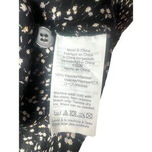 This mini dress showcases a charming floral print against a black background, paired with a flattering V-neckline and short sleeves. It features a button-front design that adds a touch of classic elegance to its playful silhouette. Crafted from 100% viscose, its lightweight material ensures comfort and ease for versatile wear.