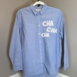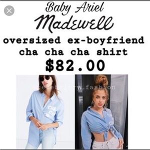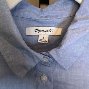 Worn one time. Received tons of compliments. Oversized size small. The colors are chambray blue and white. Approximately 29 inches from shoulder to end in the back and 26 1/2 inches in the front. From pit to pit it is approximately 22 inches. The sleeves are approximately 22 1/2 inches.