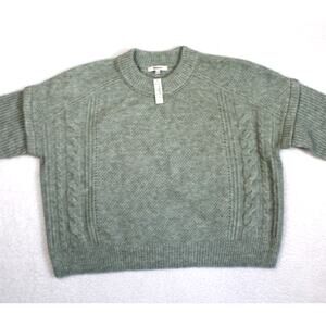 Madewell Cable Knit Sweater Alpaca Wool Womens Medium Green Boxy Classic NEW