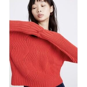 Madewell Cable Knit Sweater Womens Small Red Crewneck Alpaca Wool Blend Pullover