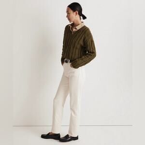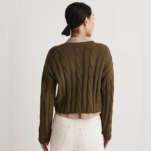 Madewell Cable-Knit V-Neck Crop Chunky Sweater in Loren Green Size Small 2023