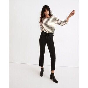 Madewell Cali Demi Boot Jeans Edmunds Wash Black Womens Size 28 Raw hem