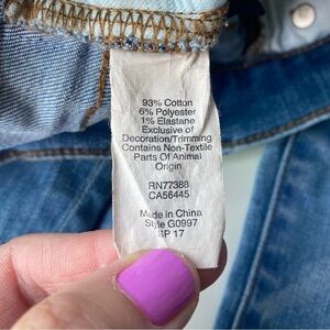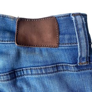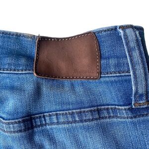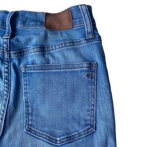 The popular Cali Demi Boot jeans by Madewell. Exposed button fly, high rise, medium wash. Raw fraying hems. Good condition.