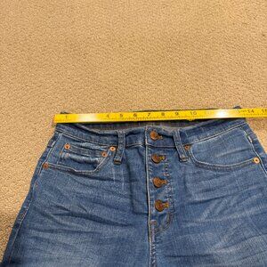Madewell Cali Demi-Boot Jean Boho Distressed Raw Hem Ankle Crop Mini Flare High Waist in Bronson Wash: Button-Front Edition Size 25 #JO512