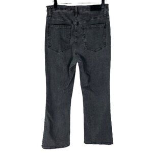 A pair of Madewell Cali Demi-Boot Jeans in Bellspring Wash: Button-Front Edition. This is a Washed Black rinse with an exposed button fly. Ankle crop length.