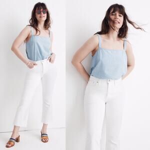 Madewell Cali Demi-Boot Jeans in Pure White: Raw-Hem Edition, size 28.