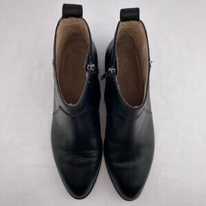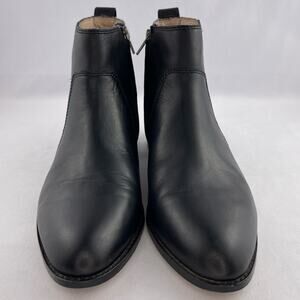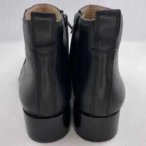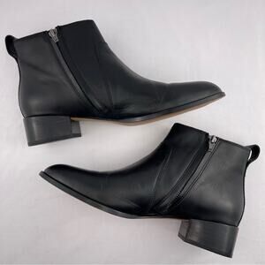 This leather bootie, with trendy pointed toe, hits right above the ankle for a classic and streamlined look.