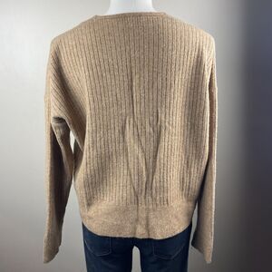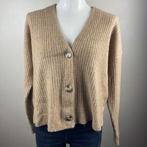 Madewell Cameron Ribbed Cardigan Sweater Tan Preppy Cozy sz Small Wool Blend