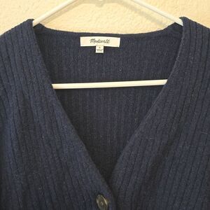 Madewell Cameron Ribbed Cardigan Sweater in Coziest Yarn- Navy Small small