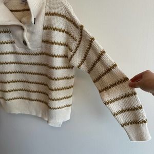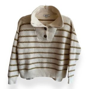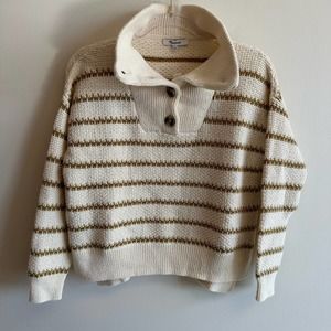 Madewell Canby Button Mockneck Sweater Striped Cream Tan in Stripe Size XS