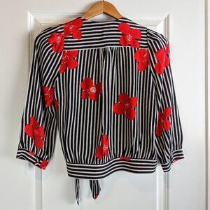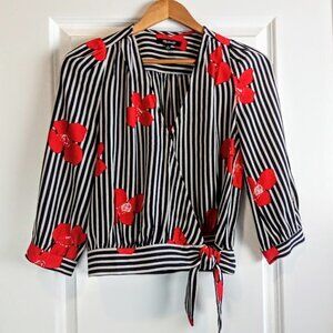 Madewell Candied Orchids Striped Red Floral Wrap Top XS