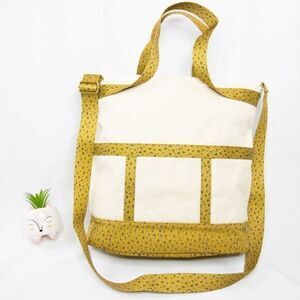Made of supersturdy cotton canvas with leopard print, this roomy colorblock tote has both schlep-friendly top handles and a removable crossbody strap. Big enough to hold all your go-to-the-park necessities, it has a secure zip pocket inside and slide compartments on the outside (the little leather one is made for a subway card)