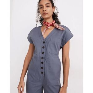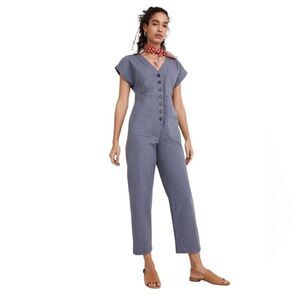Madewell Cap Sleeve Cotton Blend Button Front Jumpsuit in Sunfaded Indigo. Women's size XS. Excellent preowned condition