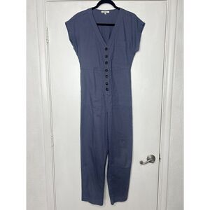 Madewell Cap Sleeve Cotton Blend Jumpsuit Button Sunfaded Indigo Blue Size XS