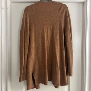 Stay cozy and stylish with this elegant brown open-front sweater