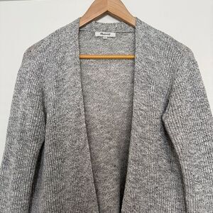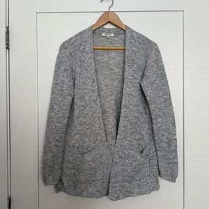 Madewell Cardigan Womens XS Gray Knit Open Front Pockets Linen Blend Oversized