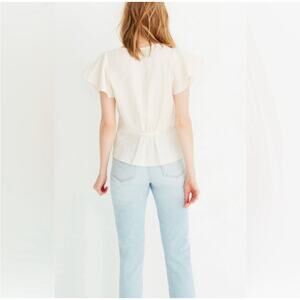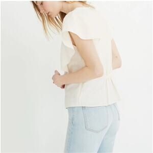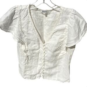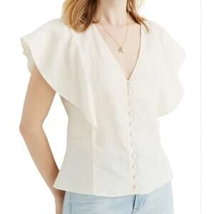 Madewell Carmelina Top Button Up Flutter Short Sleeve Linen Blouse Cream Size 6