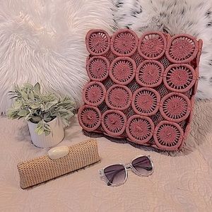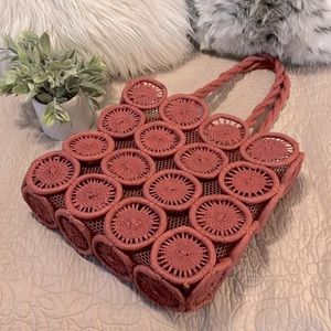 Madewell Catania Mauve Pink Boho Circle Mesh Two Handle Beach Pool Lake Tote
