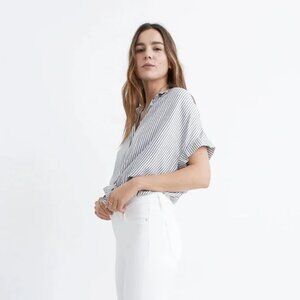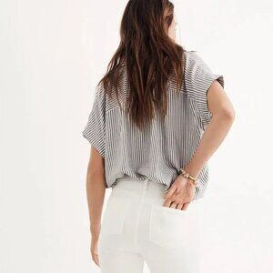 Madewell Central Shirt In Gabriel Stripe Soft Short Sleeve Gray White Size XXL