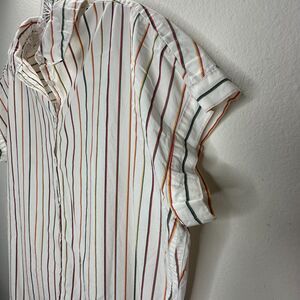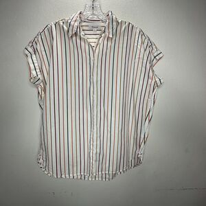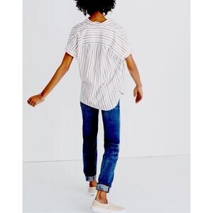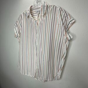 Madewell Central Shirt White Green Red Sadie Stripe Short Sleeve Button Front SM