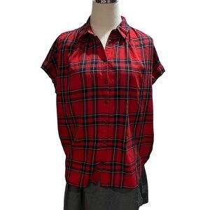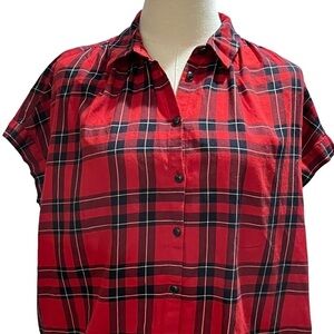 Madewell Central Shirt in True Red Dahl Plaid Med Short Sleeve Button Oversized