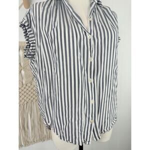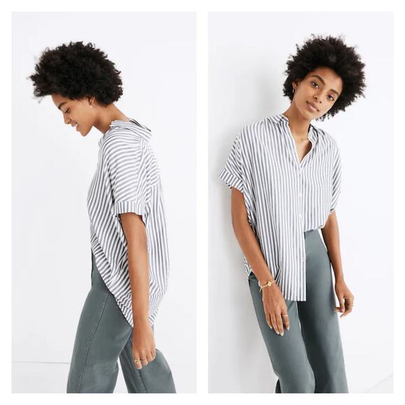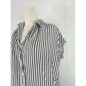 Madewell Central Stripe Button Down Shirt Size XS Short Sleeve Hi Low Top