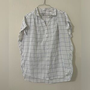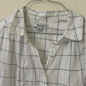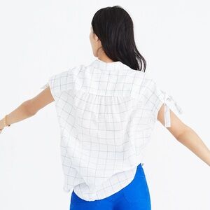 Madewell Central Tie-Sleeve Shirt Windowpane Blue Size Medium Checked Oversized