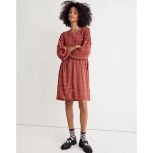 Madewell Challis Red Button-Front Mini Dress in Tiny Daisy Sz XS