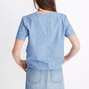 Madewell Chambray Eyelet V Neck Tie Top Small