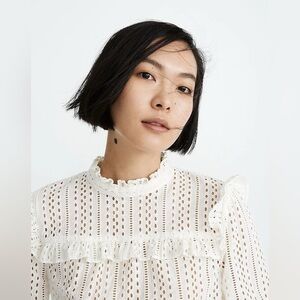 Madewell | Chambray Long Sleeve Ruffled Yoke Bib Cottage Core Prairie Blouse