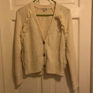 Artful touches of fringe make this cotton-blend cardigan the perfect sweater to toss on over a dress or a jeans-and-a-tank look