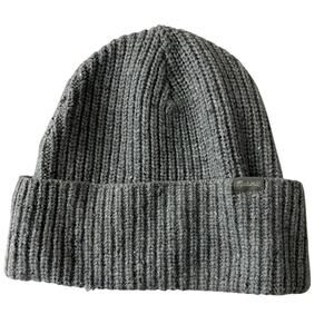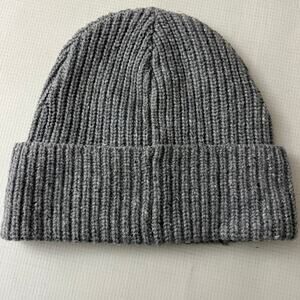 Chunky Merino Wool Cuffed Beanie Hat Winter Gray One Size NEW