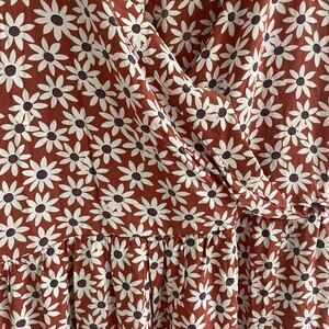 Madewell Clara Burnt Orange Falling Daisy floral faux wrap Midi sundress NA239 M