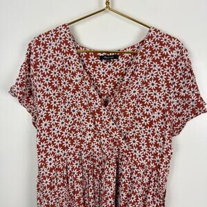 Madewell Clara Midi Dress Falling Daisies Surplice Short Sleeve Orange Sz XXL