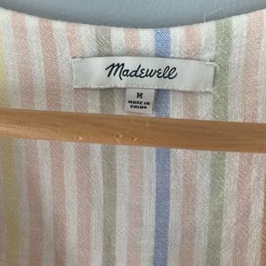 Madewell Clara linen blend cream pastel plaid midi dress with pockets medium