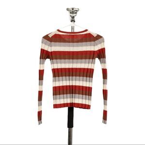 Our take on a '90s pullover, this retro-striped ribbed sweater has a made-for-layering slim fit and cool ruffled edges on the cuffs. Wear it as a top with overalls or mom jeans.