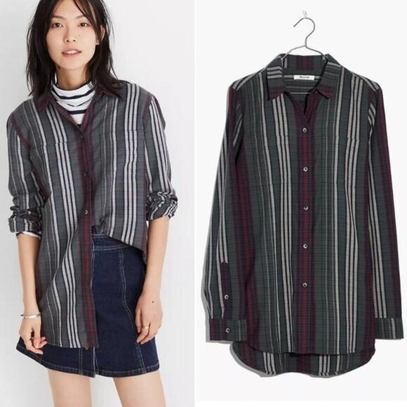 Madewell Classic Ex-Boyfriend Cotton Oversized Shirt Rockvale Plaid Medium
