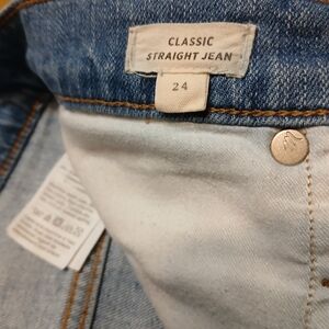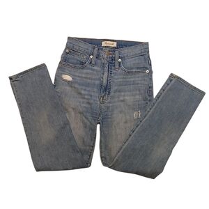 Stylish light blue distressed jeans with a classic fit. Perfect for casual wear.