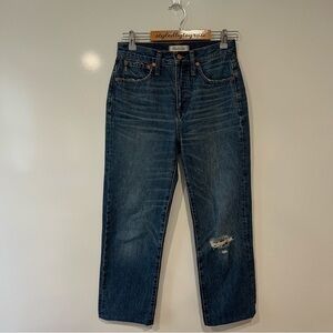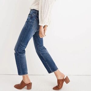 Madewell Classic Straight Jeans in Jade Wash: Knee-Rip Edition