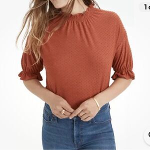Madewell Clipdot Cream Ruffle Top Blouse Size Small