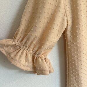 Great condition, ruffled neckline and sleeves. Pullover style, textured dot fabric.