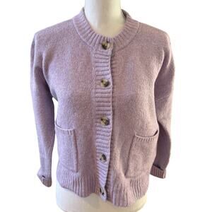 Madewell Colburne Cropped Cardigan Sweater Heather Orchid, size S. Good preowned condition, super soft cotton poly wool elastine blend with button front detail and pockets.