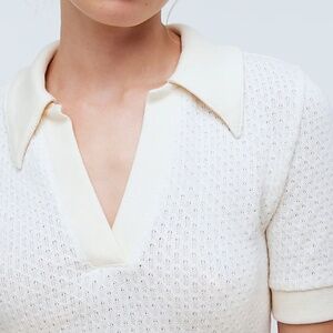 Made from 100 percent cotton, this airy pointelle-knit sweater tee has a classic polo collar and split crewneck. Comfy and relaxed, it's perfect to throw on for a chill day out and about.